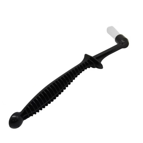 This group head brush has a curved handle, with a stiff brush on one end and a ~2g scoop at the other. We recommend using this brush with either Urnex Cafiza 2 or Caffenu espresso machine detergents to make cleaning and backflushing of any espresso machine a hassle-free experience.