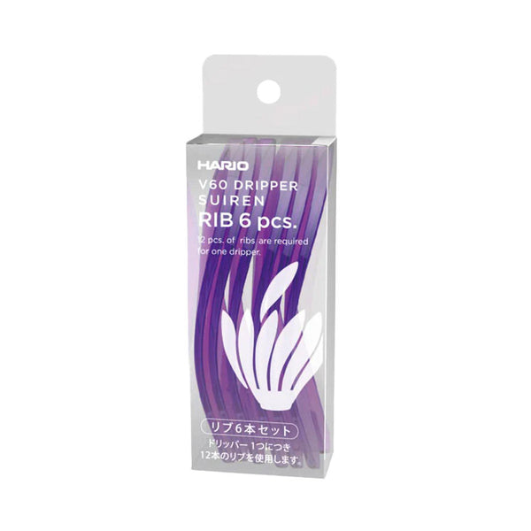 This pack of 6 extra ribs allows you to create your own unique V60 Suiren Dripper. Choose your favourite, or mix and match from the following six colours in translucent, heat-resistant PCT resin. The Hario V60 Suiren Dripper base ring has room for a total of 12 ribs.
