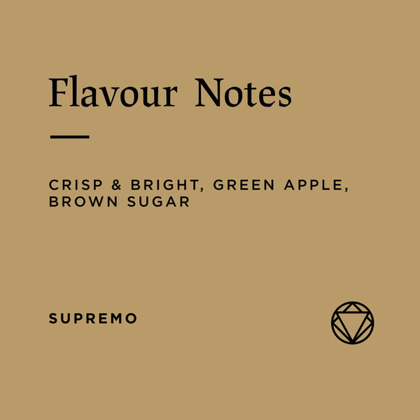 “This Colombian lot is made up of various varieties, with the Supremo classification reflecting the bean size and grade rather than a single variety. These larger, dense beans, uniform in size, allow for more consistent roasting, producing a coffee that has controlled caramelisation and minimal bitterness. We start with a medium charge to allow for ample soak time during the ramp, followed by a controlled decrease in the rate of rise to preserve clarity. The washed processing accentuates brightness, resulting in a profile with balanced structure, ideal for milk-based beverages.”